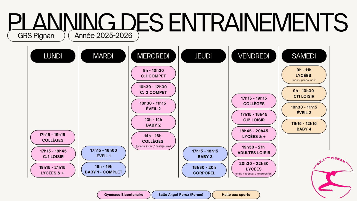 Veillez à bien choisir votre créneau en fonction de l’âge de votre enfant, les compétitions ou non. En cas de doutes n’hésitez pas à nous contacter par email à grspignan@gmail.com